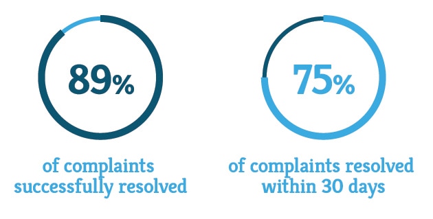 We resolved 75% of all complaints within 30 days.