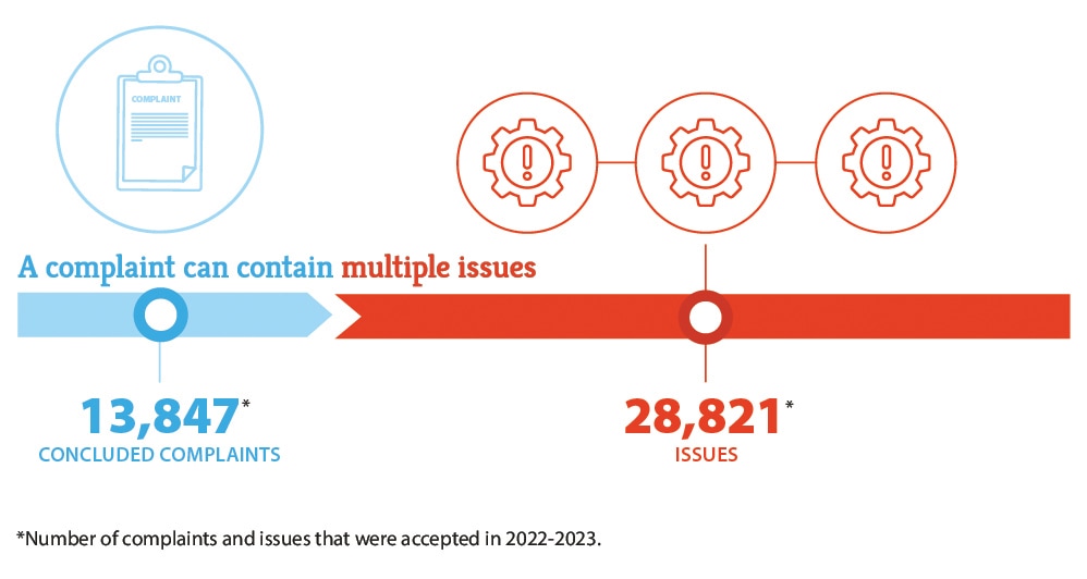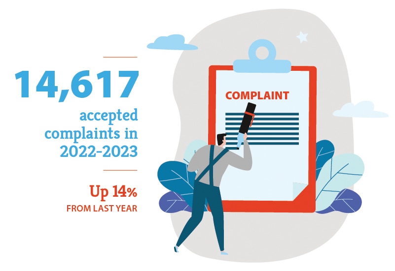 In 2022-23, we accepted 14,617 complaints filed by customers across Canada. This represents a 14% increase from last year.