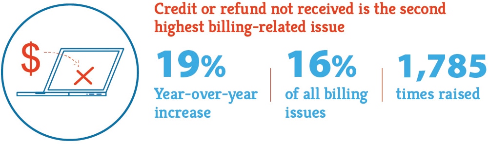 Concerns about not receiving a promised credit or refund were the second biggest billing issue.