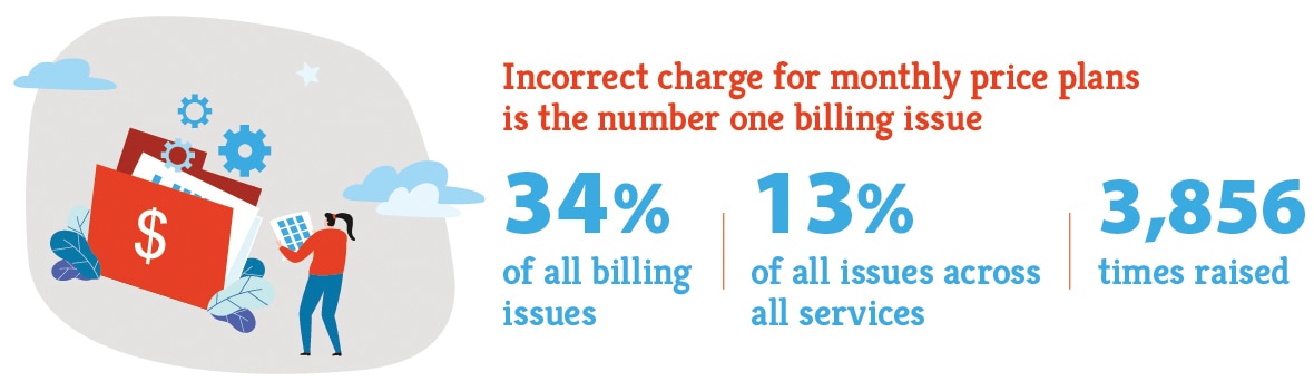 In 2022-23, 34% of all billing issues were about customers being charged incorrectly for their monthly price plans.