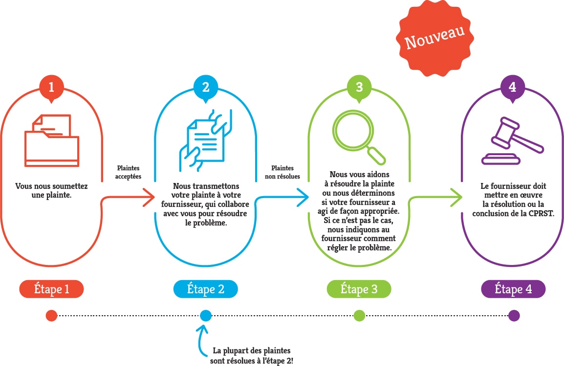 Notre processus simplifié de traitement des plaintes est conçu pour aider les clients et clientes et les fournisseurs de services à régler leurs problèmes plus rapidement. Il les aide également à mieux comprendre de quelle façon nous rendons des décisions au sujet d’une plainte.